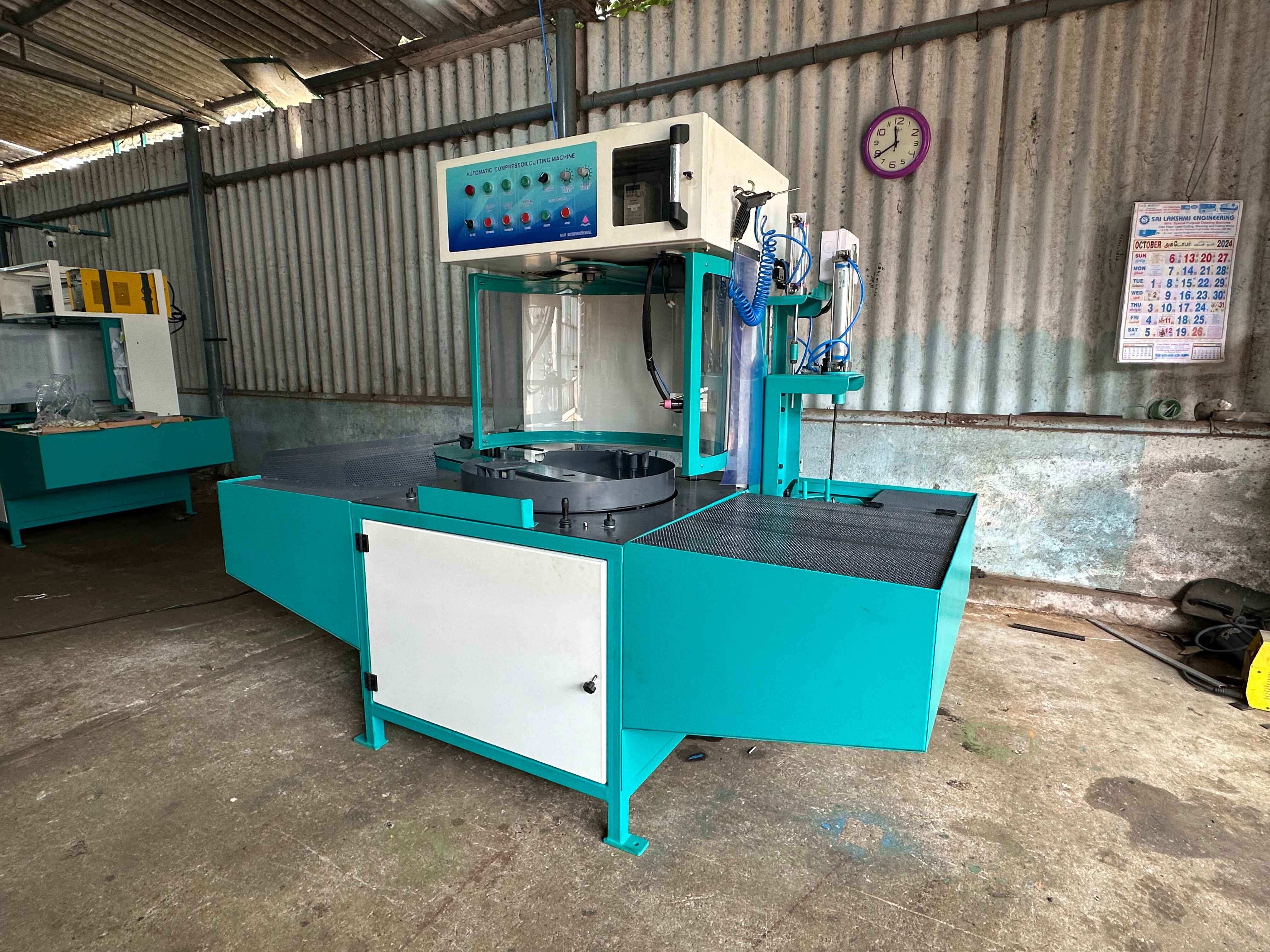 ADVANCED COMPRESSOR CUTTING MACHINE WITH VERTICAL ATTACHMENT AND AUTOMATIC EJECTION(UNLOADING)